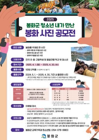(아름다운교육신문) 봉화군은 ‘2025 봉화군 청소년 내가 만난 봉화 사진 공모전’을 개최한다.
