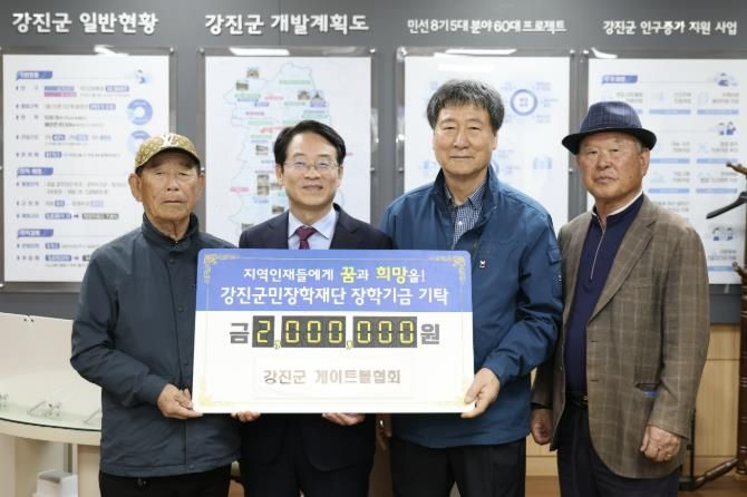 강진군 게이트볼협회는 지역 어르신들이 중심이 된 단체로 꾸준히 2016년부터 매년 손홍식 회장과 회원들이 십시일반 모아 장학금을 기탁하고 있으며 올해에도 2백만 원의 장학금을 기탁했다. 지금까지 10회에 걸쳐 총 2천만 원의 장학금을 기탁 하며 꾸준한 나눔을 실천하고 있다. 손홍식 게이트볼협회 회장은 ”우리 지역의 젊은 인재들이 좋은 환경에서 더 나은 교육 기회를 통해 사회에 긍정적인 변화를 일으키길 바란다“고 말했다.