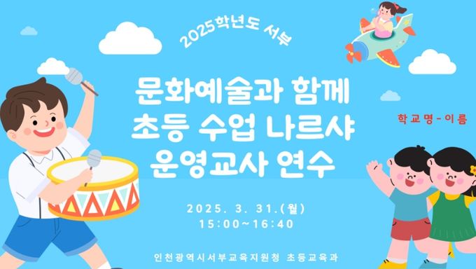 (아름다운교육신문) 인천서부교육지원청은 3월 31일, ‘문화예술과 함께, 초등수업 나르샤 교사 연수’를 개최하며 문화예술 기반의 창의적 수업 혁신을 지원했다.