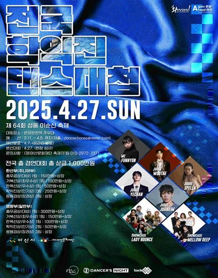 올해 처음 열리는 제64회 아산 성웅 이순신 축제 “전국 학익진 댄스 대첩”은 심사의 공정성을 위해 댄스 부문별 다양한 유명 심사위원을 구성하고 총 16개 우승팀을 심사로 선발할 계획이다.