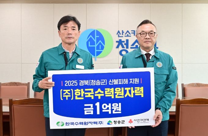 황주호 사장은 “산불로 큰 피해를 입은 청송군 주민들이 하루빨리 일상으로 돌아갈 수 있기를 바라며, 앞으로도 지속적인 지원을 아끼지 않겠다.”라고 전했다.