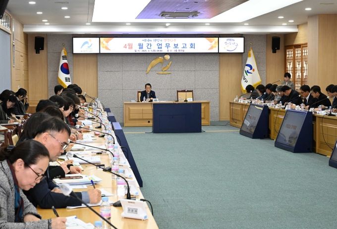 조직 개편 이후 처음 개최된 월간업무보고회에서는 남부권 광역관광 개발사업과 반다비 빙상장·복지관 건립을 비롯한 국별 주요 업무 추진 사항에 대해 면밀히 점검하고, 효율적인 업무 추진을 위한 매뉴얼 체계 확립과 현장 중심의 업무 추진을 중점적으로 논의했다.