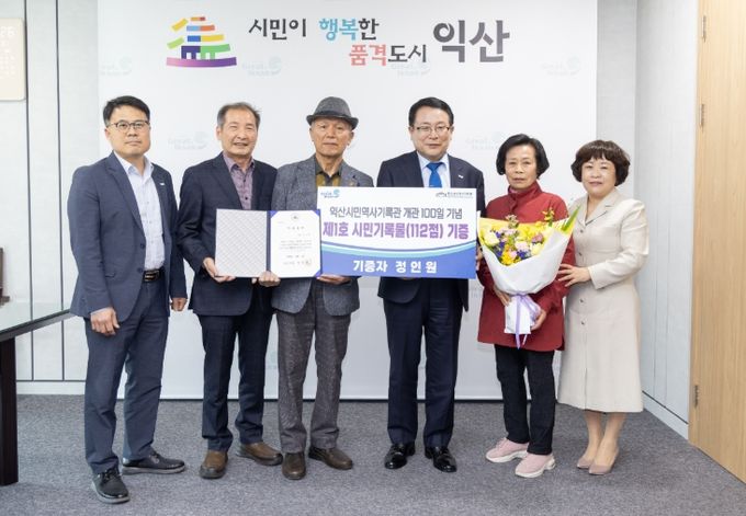 익산시는 익산시민역사기록관 개관 100일을 맞아 1일 시민기록물 기증식을 개최했다. 이날 제1호 기증자인 정인원씨가 가문에서 대대로 보관해 온 기록물 112건을 익산시에 기증했다.