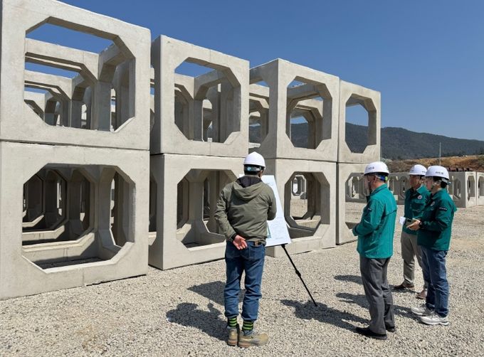 이날 점검에는 재해예방전문지도기관을 비롯해 사업 발주기관, 시공업체 관계자 등 약 20명이 참석했다. 설계도서와 실제 제작물 간 일치 여부와 사용 자재(콘크리트, 철근 등)의 규격·품질, 제작 현장 내 안전장비 착용 여부, 작업자 안전관리 체계 등 인공어초 제작 공정 전반을 꼼꼼히 점검했다.