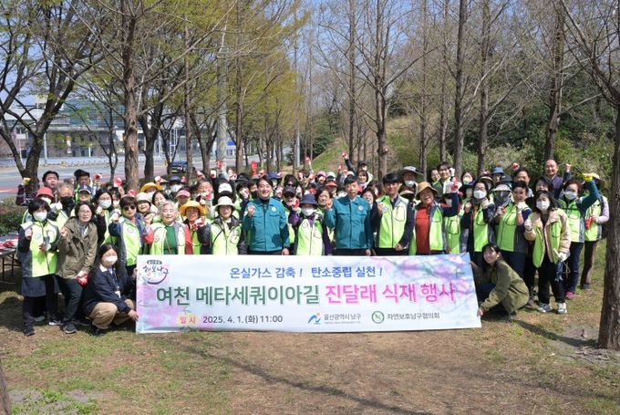 (아름다운교육신문) 울산 남구는 1일 태화강역에서 장생포 방면으로 가는 여천 메타세쿼이아길 도로변(여천동 498-4 ~ 482-5, 길이 365m)에 진달래 묘목 심기 행사를 실시했다.