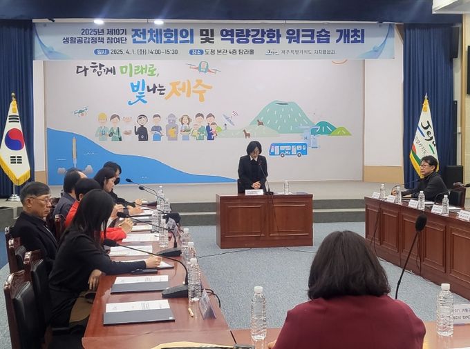 이날 회의에는 생활공감정책 참여단과 제주도·행정시 관계 공무원 등 40여 명이 참석한 가운데 2025년 제주도 생활공감정책 참여단 운영계획 보고, 임원진 선출, 정책제안 기법 교육 및 활동사례 공유, 활성화 방안 토론 등이 진행됐다.