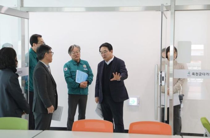 (아름다운교육신문) 황규철 옥천군수가 옥천군 대학타운형 도시재생 뉴딜사업의 일환으로 진행 중인다(多)가치동행센터 현장을 방문해 추진 현황을 점검하고 관계자들을 격려했다.
