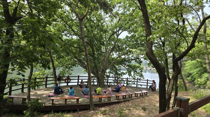 운영되는 프로그램은 숲길을 활용한 야외 산림치유 활동뿐 아니라, 싱잉볼, 아로마테라피, 통나무 명상 해독 체조, 건식 족욕 등 실내 프로그램이 조화를 이루며 구성돼 참여자들에게 다채로운 치유 경험을 제공한다.