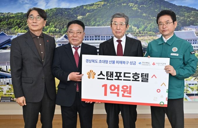 (아름다운교육신문) 경상북도는 1일 스탠포드호텔 그룹 권중갑 회장을 대신해 희창물산 권중천 회장이 경북도청을 방문해 산불 지역 피해 복구와 이재민들을 위한 성금 1억원을 전달받고 사회복지공동모금회에 기탁했다.