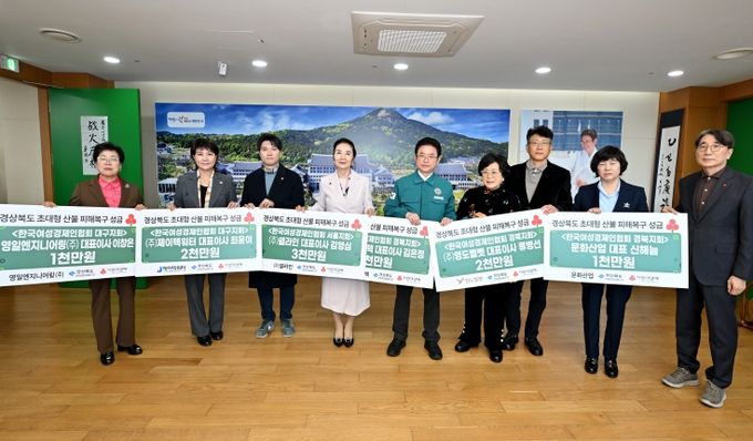 이철우 경상북도지사는“어려운 시기에 성금을 기부해 주신 한국여성경제인협회 각 지회 회원들께 깊은 감사의 뜻을 전하며 도내 산불 피해 이재민 지원에 최선을 다하겠다”고 밝혔다.