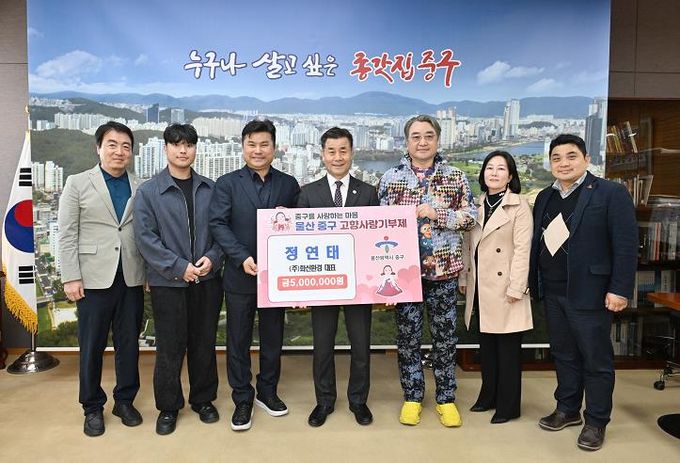 정연태 ㈜화신환경 대표는 앞서 지난 2월 26일 중구에 이웃돕기 후원금을 500만 원을 전달한 바 있다.