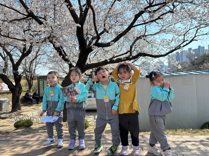 유아들은 안전한 야외 체험학습을 위한 약속에 대해 이야기 나누고, 강변공원으로 출발했다. 공원에서 벚꽃이 활짝 핀 나무들을 만나며 자연 속에서 친구들과 함께 행복한 시간을 보내며 건강한 신체활동을 즐겼다. 아이들은 자연의 아름다움을 발견하고 호기심과 지식을 확장시키는 시간이 됐다.