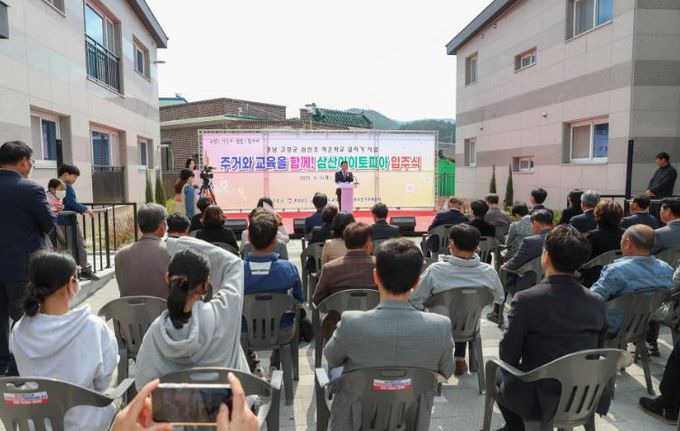 (아름다운교육신문) 고성군은 4월 3일 삼산면 LH 공공임대주택(삼산아이토피아)에서 이상근 고성군수, 최을석 고성군의회 의장, 전제동 고성교육장, 임도식 한국토지주택공사(LH) 경남지역본부장, 심유미 경상남도 교육인재과장과 삼산면 지역주민 등 70여 명이 참석한 가운데 LH 공공임대주택 ‘삼산아이토피아’ 입주식을 가졌다고 밝혔다.