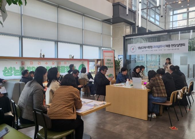 (아름다운교육신문) 성남교육지원청은 4월 3일 성남고용노동지청과 협업하여 조리실무사 채용 현장 설명회인‘일자리 수요데이, 성남 내일드림 채용 행사’를 개최했다.