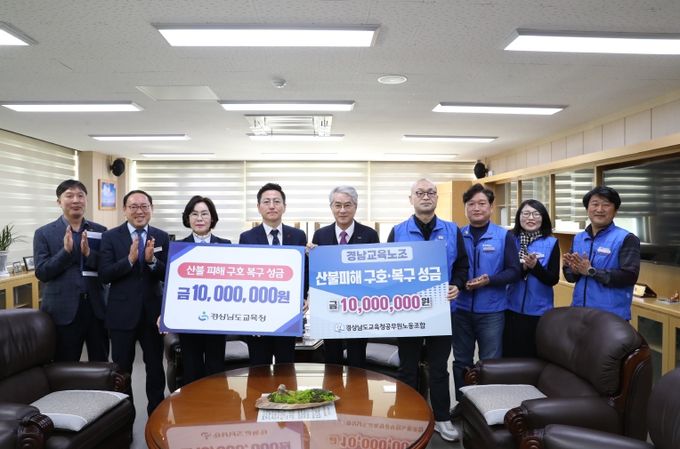 한편, 경남교육청은 1일부터 20일까지 도내 모든 기관과 학교에서 성금 모금 운동을 펼치고 있으며 4월 말에 추가 금액을 기부할 계획이다.
