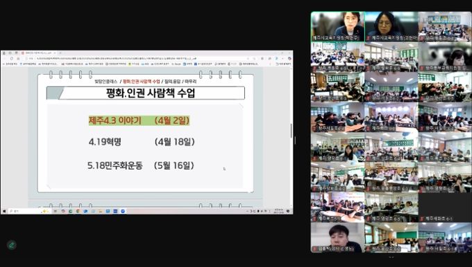 수업에 참여한 제주의 한 학생은“제주4⸱3에 대해 더 많이 알게 됐고 진상을 밝히기 위한 도민들의 연대와 노력에 대해서도 알게 됐다”며“되풀이되지 않기 위해 지금 우리가 해야 하는 것이 무엇일까를 생각할 수 있었다”고 말했다.