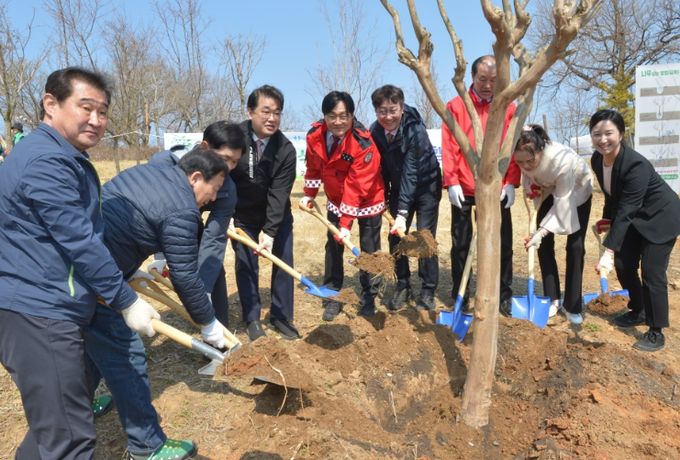 간단한 식전 행사 이후 참여자들은 나무심기 작업 요령을 숙지하고 2인 1조로 식재 구역에 수목을 심는 등 뜻깊은 행사를 진행했다.