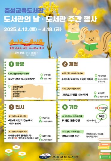 (아름다운교육신문) 춘성교육도서관은 2025년 도서관의 날·도서관 주간을 맞아 4월 12일부터 4월 30일까지 다채로운 독서문화행사를 운영한다.