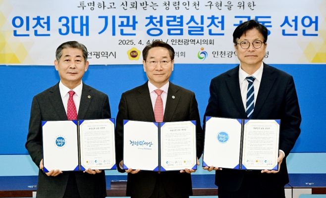 ‘인천 3대 기관 청렴 실천 공동선언’은 ▲청렴한 공직문화 조성 ▲특혜 배제 ▲시민과 ]소통하는 청렴 행정 ▲반부패·청렴 정책 강화 등의 내용이 담겼다.