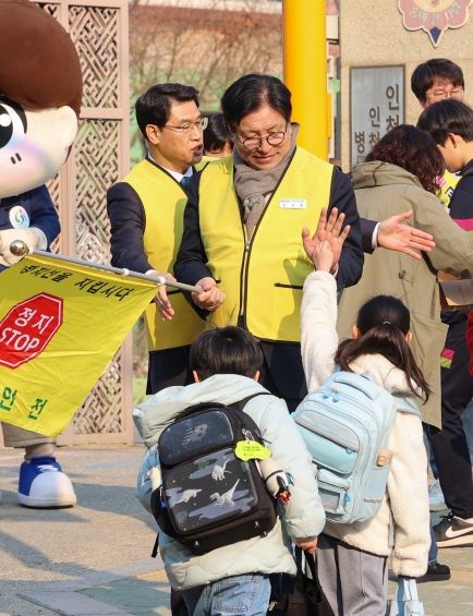 도 교육감은 인천교육청 마스코트와 함께 교통안전 깃발을 들며 학생들의 안전한 통학을 응원했고, 녹색어머니회는 ‘아이 먼저’ 캠페인을 홍보해 시민들의 참여를 유도했다.