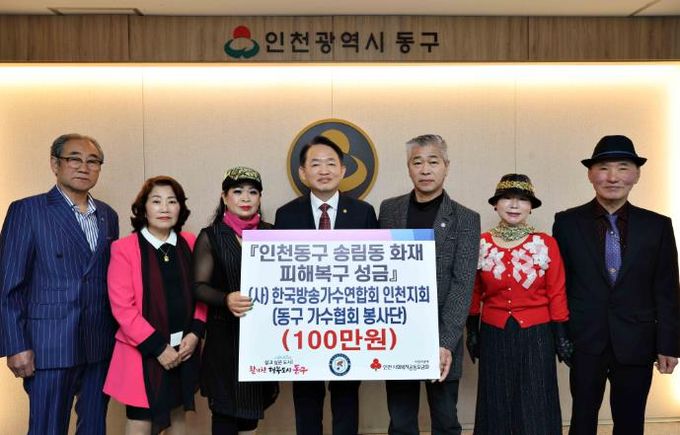 (아름다운교육신문) 인천 동구는 (사)한국방송가수연합회 인천지회가 지난 3일 송림동 화재 피해 복구를 위해 모은 성금을 기탁했다고 밝혔다.