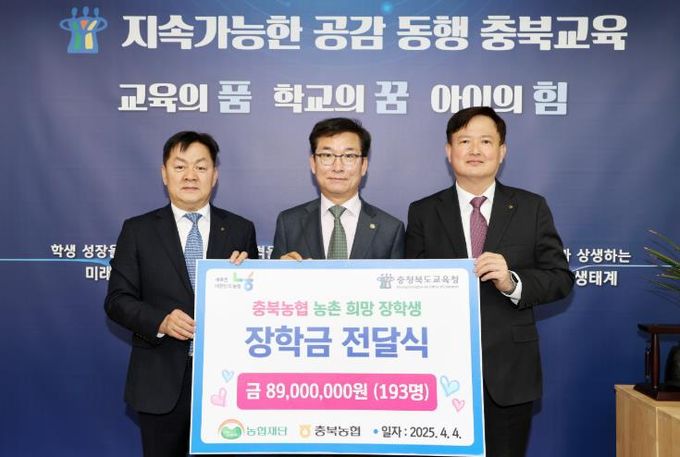 (아름다운교육신문) 충청북도교육청은 충북농협과 4일 오전, 농촌 장학생을 위한 희망 장학금 전달식을 개최하고 미래 인재 양성을 위한 지속적인 지원을 약속했다.