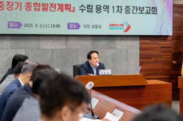 오산시는 2일 시청 상황실에서 ‘2040 오산시 중장기 종합발전계획 수립 용역’ 1차 중간보고회를 열고, 도시 전반을 아우르는 미래 전략과 비전을 공유했다. 이 자리에는 이권재 오산시장을 비롯해 부시장, 국·소장, 관계 공무원 등 50여 명이 참석했다.