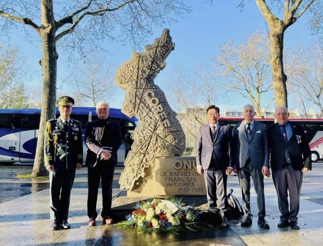 전진선 양평군수를 비롯한 대표단은 오전, ‘한국전 참전 유엔 프랑스 대대 광장(Place du Bataillon de l'ONU)’에 조성된 6·25전쟁 참전 기념비에 헌화하고 묵념했다. 이 기념비는 1989년 한반도 모양으로 제작되어 세워졌으며, 2021년에는 프랑스 대대 소속으로 참전해 전사한 한국인 장병들의 이름이 추가로 새겨졌다.
