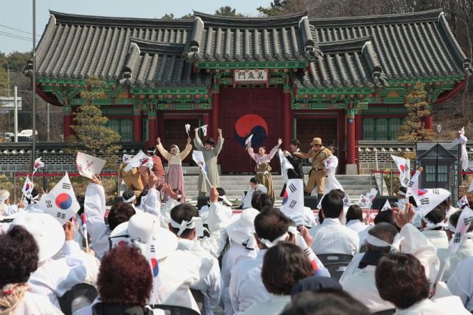 이어 참가자들은 만세 재현 행진을 펼치고 헌화·분향을 하며 선열들의 넋을 기렸다.