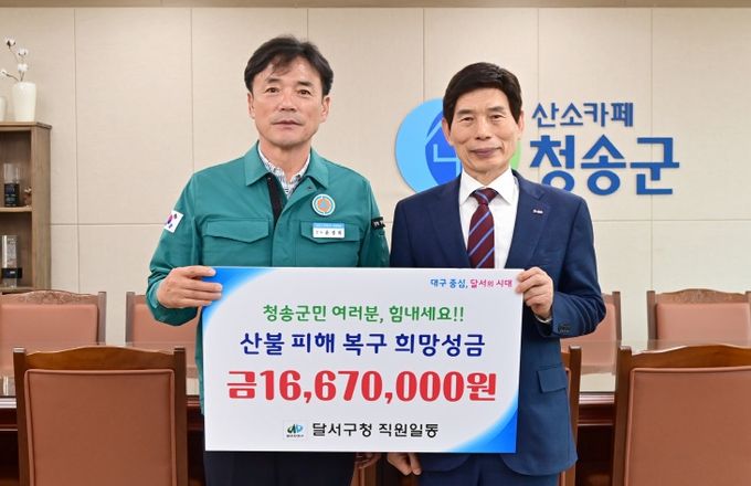대구 동구는 청송군 주민들을 위한 긴급 구호 성금 1,190만 원을 지원했다.