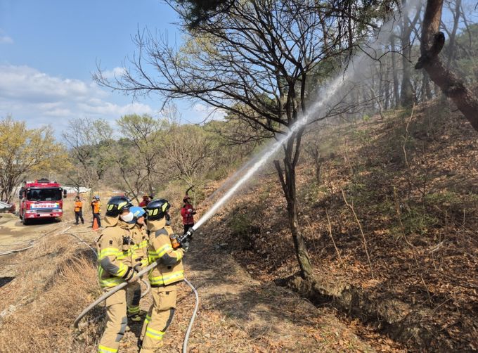 훈련은 기관 간 소방용수 공급과 합동 살수, 그리고 산불진화대원·소방대원·의용소방대원의 호스 전개 등 진화 협력 체계를 점검했다.