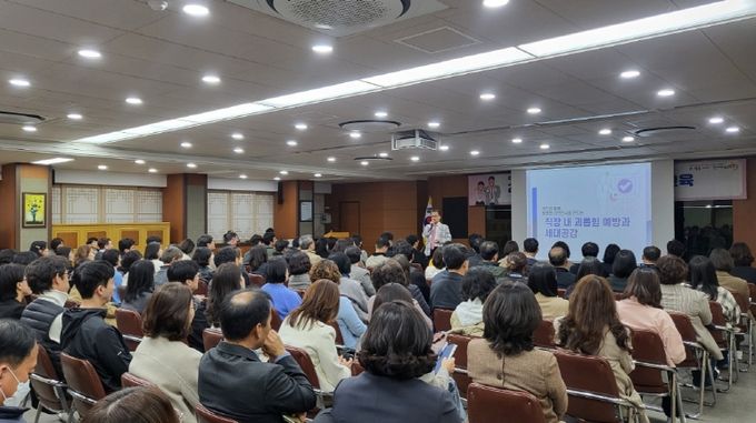 이번 교육은 중간관리자들의 직장 내 괴롭힘 문제에 대한 이해도를 높이고, 직원과의 갈등 상황을 잘 대처할 수 있는 능력과 리더십을 키워 건강한 조직문화를 조성에 기여하고자 마련됐다.