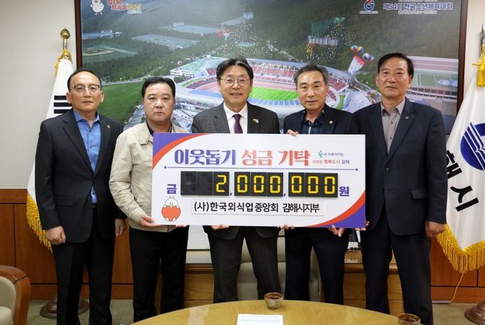 성금 전달식에는 김해시 관계자 및 한국외식업중앙회 경남지회 김해시지부 임원들이 참석하여 따뜻한 나눔의 뜻을 함께했다.