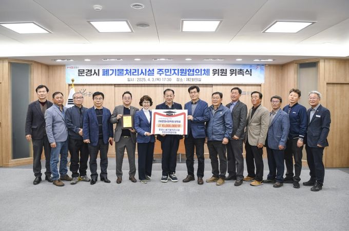 문경시 폐기물처리시설 주민지원협의체가 협의체 위원 위촉식 행사에서 문경시장학회에 1,000만원의 장학금을 기탁했다. 폐기물처리시설의 건전한 운영으로 쾌적한 환경을 유지하고 매립장 주변 지역주민들의 소득증대와 복리증진 목적으로 설립된 주민지원협의체는 2017년 500만원의 장학금 기탁 후 올해까지 총 1,500만원의 장학금을 문경시장학회에 기탁했다.