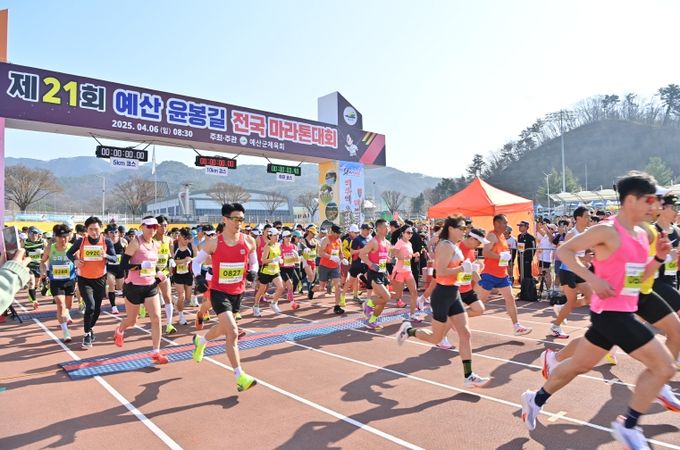 예산군체육회와 중도일보사가 주최·주관한 이날 대회에는 김 지사를 비롯해 최재구 예산군수, 참가자 및 가족 등 총 5000여 명이 참석했다.