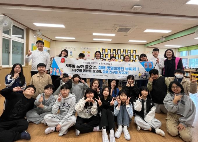 (아름다운교육신문) 제주도교육청 신제주초등학교는 4월 장애이해교육주간을 맞아 지난 4일부터 4회에 걸쳐 5학년 8개 학급을 대상으로 제주어와 제주 문화를 활용해 장애와 비장애가 함께 살아가는 장애 인식 개선 교육을 운영하고 있다.