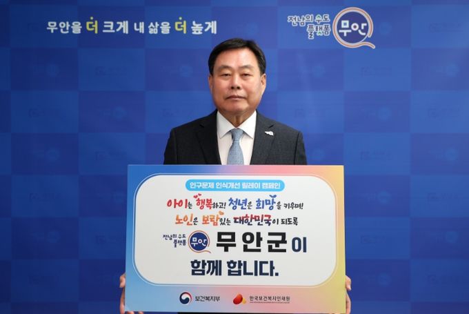 캠페인에서 김산 군수는 “지역의 미래를 함께 준비하자는 마음으로 이번 릴레이 캠페인에 함께하게 됐다”며, “군민 모두가 체감할 수 있는 인구 정책을 통해 ‘아이 키우기 좋은 무안’을 실현하겠다”고 밝혔다.