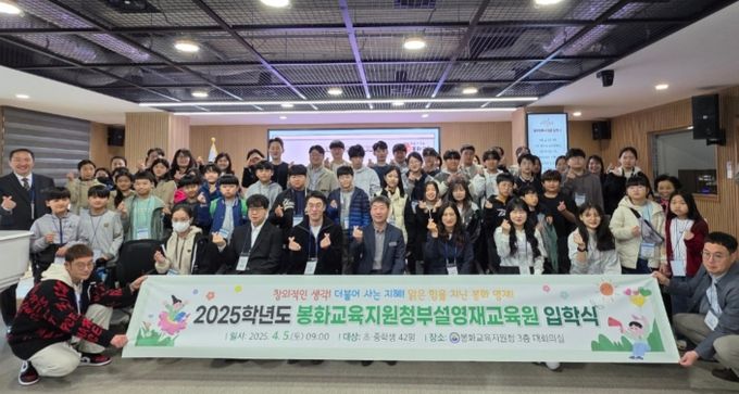 2025학년도 봉화교육지원청부설영재교육원 입학식에는 초·중등 영재교육대상자 42명 및 학부모, 영재지도강사 24명이 참석했다.