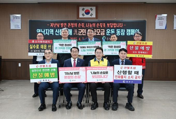 (아름다운교육신문) 홍성군은 7일 영남지역 산불 피해 주민들을 돕기 위한 범 군민 성금모금 운동의 일환으로, 군청 회의실에서 ‘영남지역 산불피해 汎 군민 성금모금 운동 동참 캠페인’을 개최했다고 밝혔다.