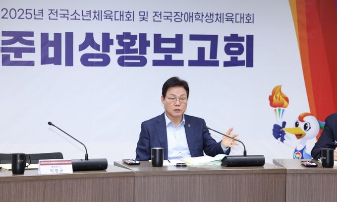 (아름다운교육신문) 박완수 도지사는 7일 오후 2시, 도청 도정회의실에서 열린 ‘2025년 전국소년체육대회 및 전국장애학생체육대회 제2차 준비상황보고회’에서 성공적인 대회 개최를 위해 철저한 안전관리와 원활한 대회 운영을 강조했다.