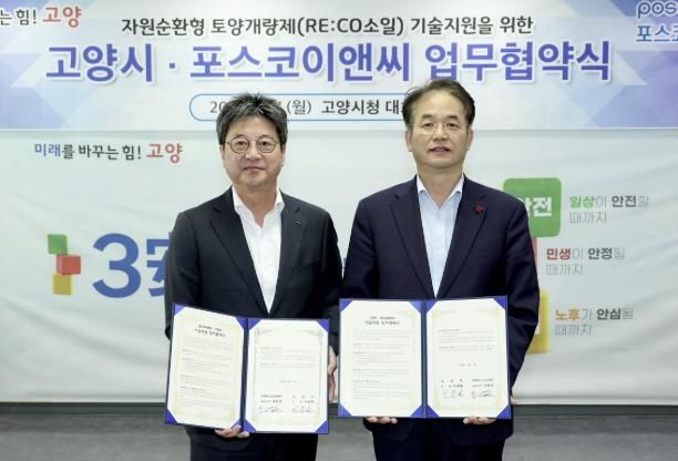 (아름다운교육신문) 고양특례시는 7일 고양시청 대회의실에서 포스코이앤씨와 자원순환형 토양개량제 ‘리코(RE:CO)소일’기술 지원을 위한 업무협약을 체결했다고 밝혔다.