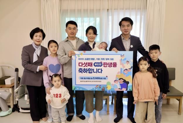 (아름다운교육신문) 전국적으로 저출산 기조가 이어지는 가운데 보은군은 지난 7일 다섯째 아이를 출산한 다둥이 가족이 탄생해 축하 메시지를 전달하고 따듯한 격려의 마음을 전했다.