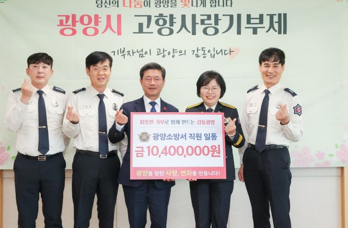 정인화 광양시장은 “시민들의 안전을 위해 헌신하고 계신 소방서 직원들이 3년 연속으로 고향사랑기부제에 동참해준 데 진심으로 감사드린다”며 “따뜻한 마음을 모아 전해주신 기부금은 광양의 발전과 지역민의 안전을 위해 소중히 사용하겠다”고 말했다.