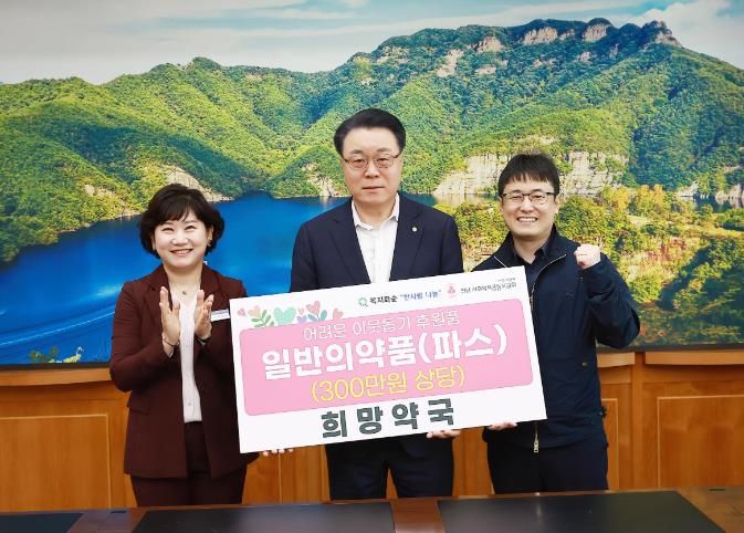 희망약국은 ▲지난 2022년 전남대병원 발전후원금 1,000만 원 ▲2023년 취약계층 파스 270만 원 상당과 초등학생 대상 약물(마약)중독 예방 교육 재능 기부에 이어 ▲올해도 화순군을 위해 꾸준한 나눔 문화 확산에 기여하고 있다.