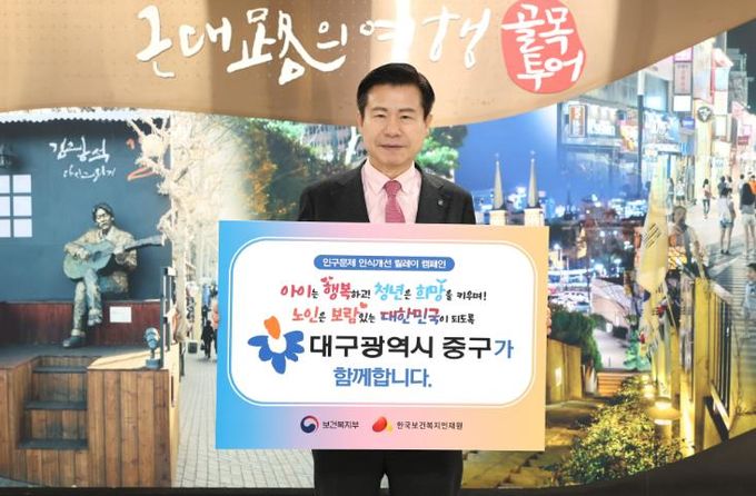 (아름다운교육신문) 류규하 대구 중구청장은 8일, 인구문제에 대한 사회적 관심을 높이기 위해 ‘인구문제 인식 개선 릴레이 캠페인’에 동참했다.