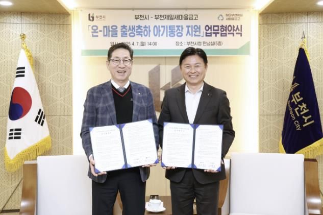 (아름다운교육신문) 부천시는 지난 7일 저출산 위기에 대응하고 출산 친화적인 지역사회 조성을 위해 부천제일새마을금고와 ‘온(溫)-마을 출생축하 아기통장’ 지원을 위한 업무협약을 체결했다고 8일 밝혔다.