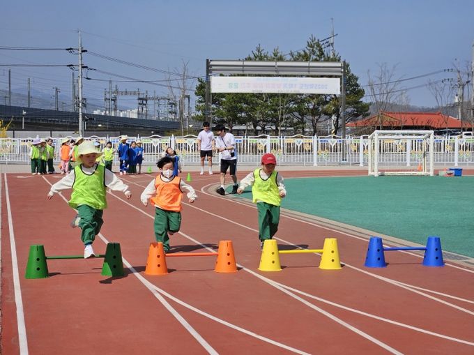 '찾아오는 어린이 축구교실'은 율빛유치원과 김천대학교 생활체육학과와의 협업으로 이루어진 행사로 지역사회 내 기관 협력체계 구축 활성화 방안 중 하나로 마련됐다.