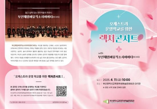 (아름다운교육신문) 부산광역시교육청학생예술문화회관은 오는 11일과 18일 오전 10시 학생예술문화회관 대극장에서 학생 1,500여 명을 대상으로 ‘오케스트라 운영학교를 위한 렉처콘서트’를 개최한다.
