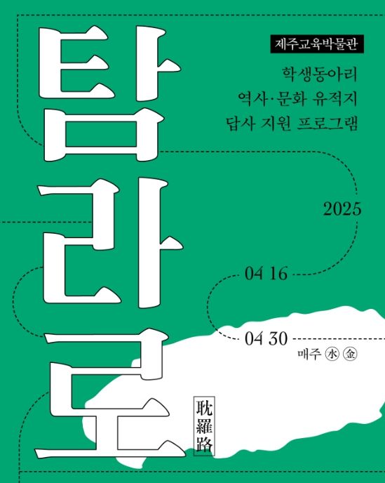 (아름다운교육신문) 제주도교육청 제주교육박물관은 오는 16일부터 30일까지 매주 수, 금요일에 학생동아리 역사·문화 유적지 답사 프로그램 탐라로를 서귀포 대신중학교, 제주여자상업고등학교 등 5교를 대상으로 운영한다.