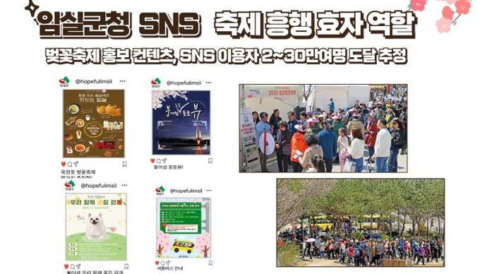 심 민 군수는“임실군청 SNS를 활용한 이번 홍보 전략이 지역 대표 축제의 매력을 효과적으로 알리는 데 큰 역할을 했다”며“앞으로도 전국적인 확산력이 큰 SNS의 정점을 더욱 살려 뉴미디어를 중심으로 한 홍보를 강화하겠다”고 말했다.